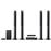 | Dimensions (l x p x h) en mm | Unité principale : 460 x 226 x 148, Enceintes avant : 256 x 256 x 1200, Enceintes centrales : 331 x 57 x 59, Enceintes surround : 256 x 256 x 1200, Caisson de basse : 211 x 411 x 337 |