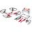 3 piles LR06 3,7V fournies, Poids : 0,823 kg, Contenu de la boîte : Quadrocoptère, radiocommande, chargeur USB, pièces de rechange, batterie amovible, notice en Français