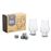 Asseyez-vous, sirotez et savourez votre boisson préférée avec ce kit pour les amateurs de whisky. Il comprend deux verres à dégustation et quatre pierres à whisky en granit, idéales pour garder les boissons au frais. Il suffit de placer les pierres au congélateur pendant quatre heures avant de les utiliser. Dimensions : 16 x 12 x 7cm Matière : verre et granit