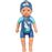Poupée nageuse fonctionnant sans pile. Il suffit de tourner ses bras, la plonger dans l'eau pour la voir nager le crawl ou le papillon. Maillot de bain et bonnet moulés, corps imperméable. Taille 30 cm. Bras, jambes et tête mobiles.