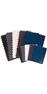 Ce modèle affiche un look résolument moderne. Il est maintenant disponible avec de nouveaux coloris. Format A5 ligné. 144 pages. Assortiment de 5 couleurs.